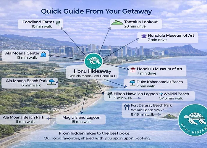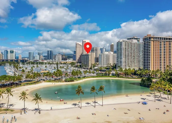広々としたホノルル*Remodeled Oceanfront In Waikiki - Ilikai MarinaアパートメントはJazz Minds Art & Cafeから徒歩でたった5分で、フォスター植物園から3.5キロメートルの距離の場所にあります。 アラモアナセンター少し離れたに位置するアパートに宿泊すると、テラスでリラックスできます。